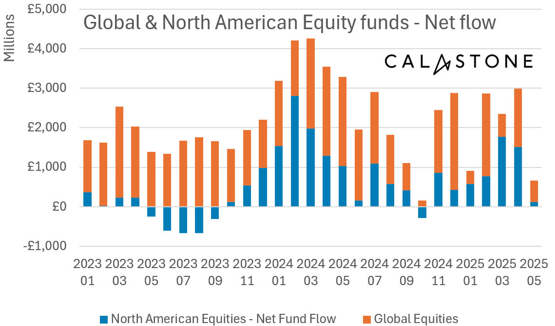 Edward Glyn, head of global markets at Calastone said: “Global markets enjoyed strong gains in May as the Trump administration retreated from its extreme positions on tariffs. Investors bought into the rally but not with any great confidence. With so much uncertainty over inflation, interest rates, geopolitics and trade wars, it seems rational for investors to be cautious. Certainly, investors are being selective with where they put their capital.”