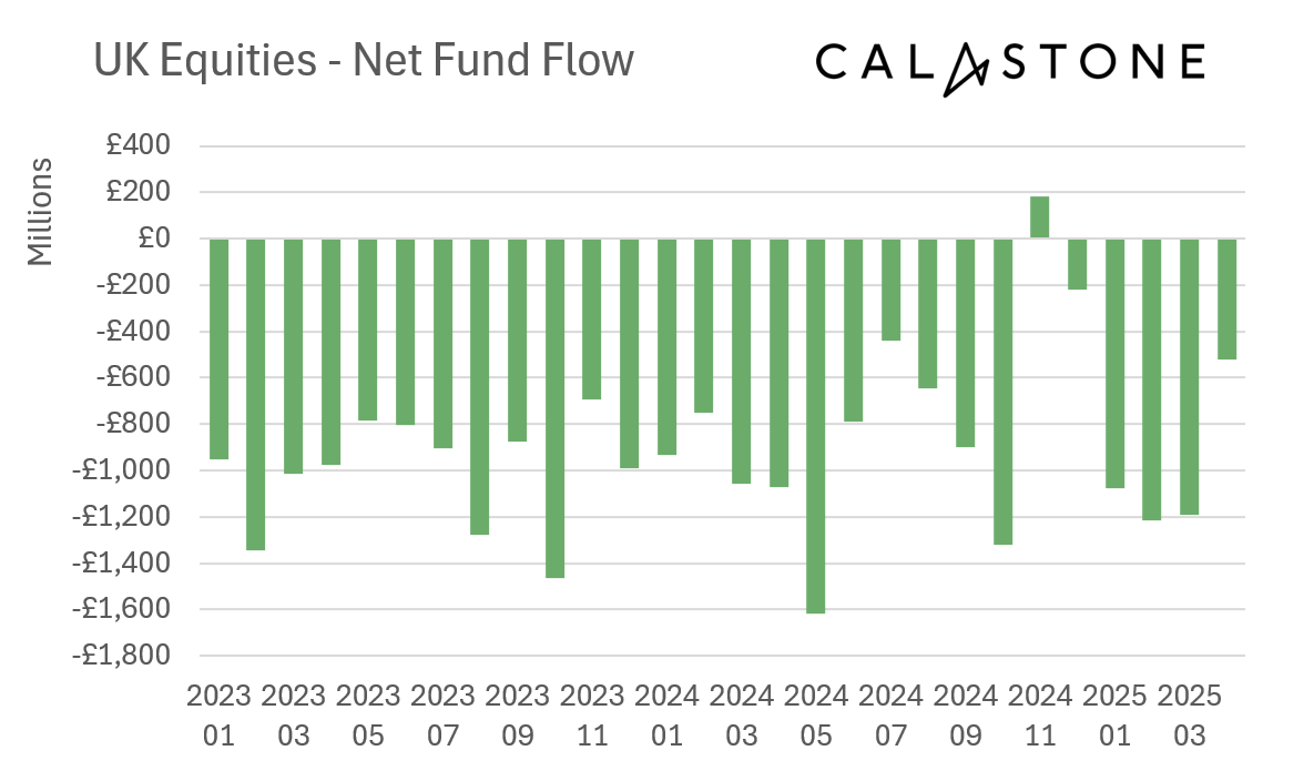 UK-focused funds saw reduced outflows – down to half the monthly average