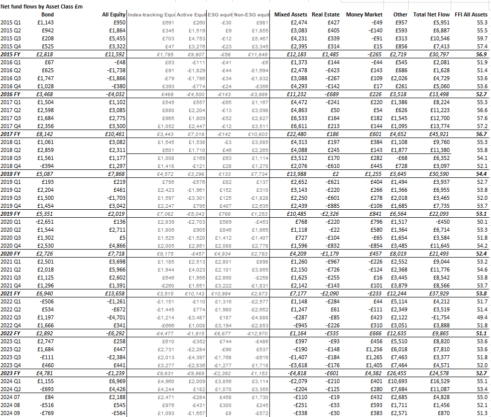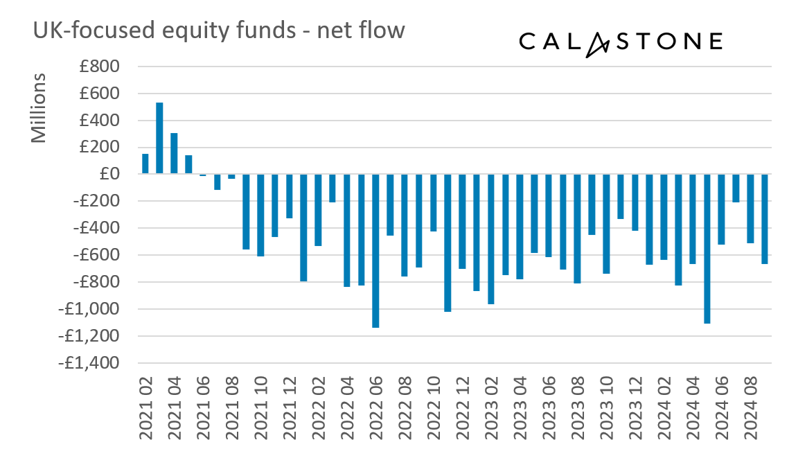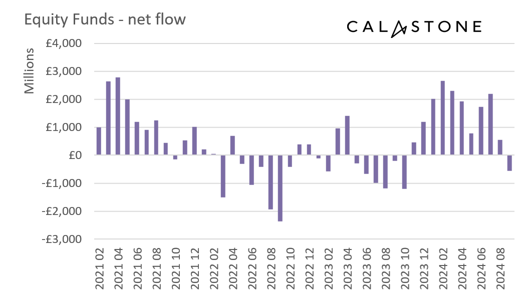 Equity funds saw their first monthly outflows in September since October 2023, according to the latest Fund Flow Index from Calastone, the largest global funds network. Investors pulled a net £564m from their holdings, ending a 10-month stint of near record-breaking inflows.[1]